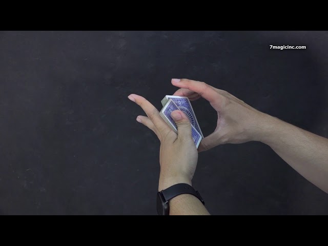 Holding the card in one hand and pulling the card causes the coin to appear in the palm of the hand.