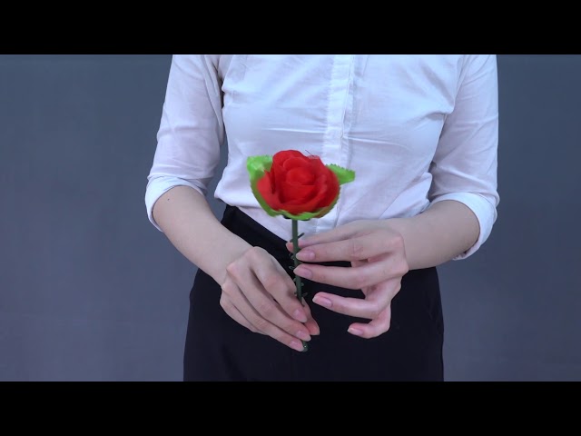 The flower is arranged neatly in the stick and when the stick is knocked on the bottom of the hat will cause the flower to expand.