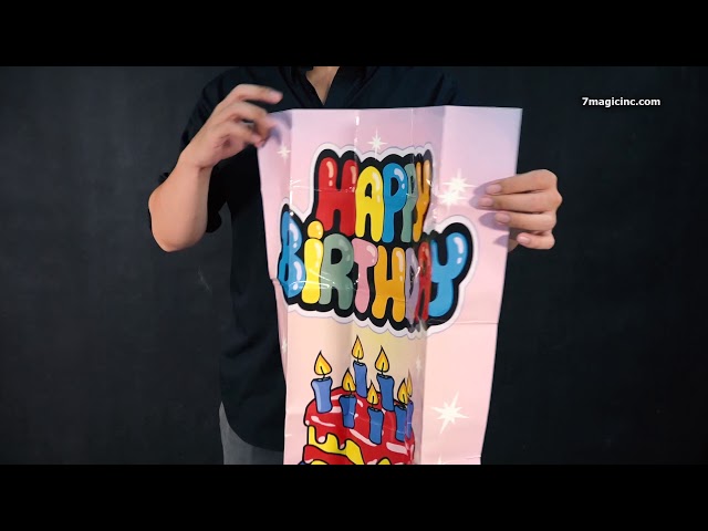 Then, you put your hand in the back and pull out the Happy Birthday piece of paper.
