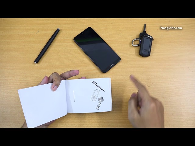The magician will remember the location of the item the audience chooses and turn the notebook properly.