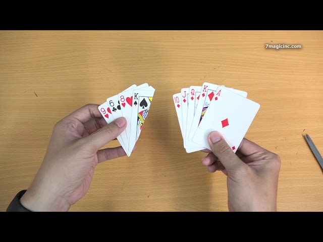 Making the black cards shorter than the red ones will be the key to this magic trick.
