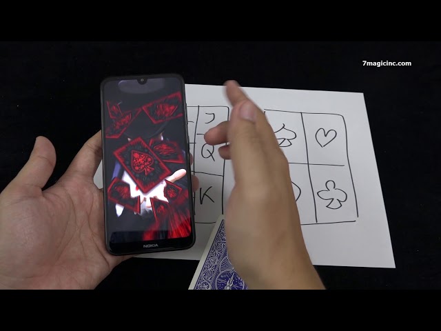 In the phone screen, a picture of the card you want will be red as the color of blood to create the mystery of the magic trick.