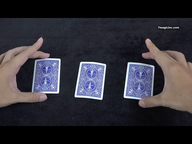 When the audience is not paying attention, your hands meet, you use one hand to grip the first card.