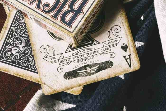 Bicycle 1800 Vintage Playing Cards by Ellusionist – Blue – High Quality Finish – No detail was left untouched–artwork on each card was delicately hand-crafted by Ellusionist’s top graphic team. Even the seal on the deck looks like it was left in a gritty New York alley “for a spell”. The cards are an illusion in themselves, because they may look very old, but they handle superbly. You have to keep telling yourself, this is a new deck of cards.