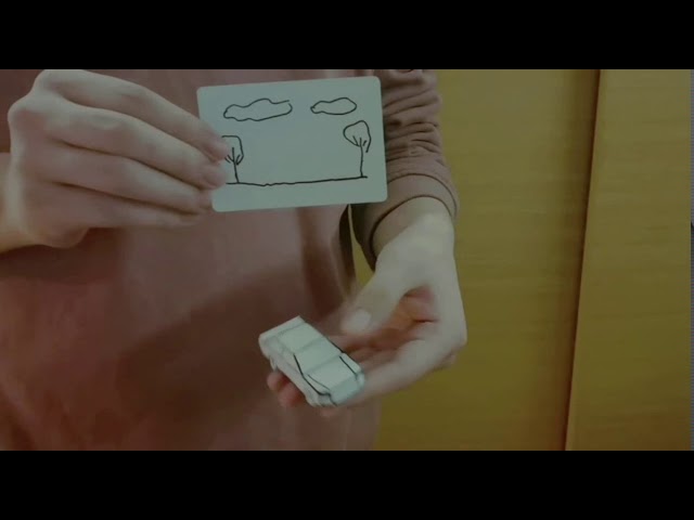 The perfomer draws a car on a card. In the blink of an eye, the drawing car comes to life that becomes a three-dimensional paper car, then turns to a real car!
