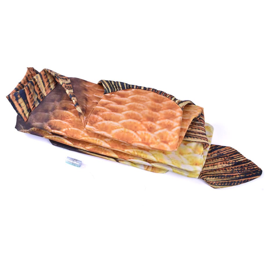 2. The magician takes out a normal fish rod and a small carton, then he tries to fish something from the carton. With the shaking of the carton, a large fish comes out magically!