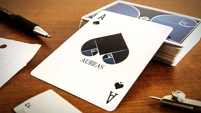 AUREAS Playing Cards is a fascinating deck inspired by the mathematical beauty of the Fibonacci Sequence and the Golden Ratio. Over a year in the making, AUREAS is produced by Italian magician Hyde and designed by Annalisa Storari and Kiran Kuruvithadam. Golden Ratio translates to “sectio aurea” in Latin. From that, the name “Aureas.”