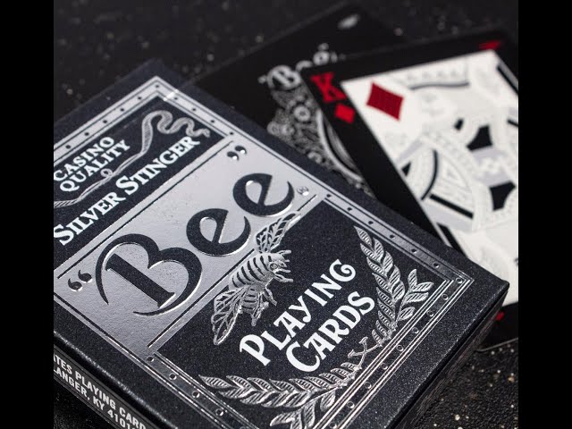 Premium edition Bee Silver Stinger Playing Cards has a cambric finish, thin crushed Premium grade stock and beautifully foiled and embossed tuck box.