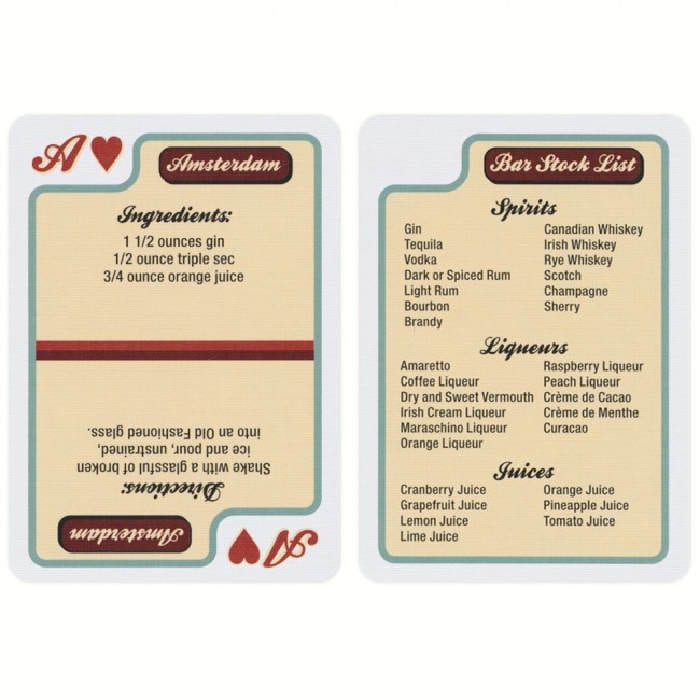 Each of the face cards feature a time-honored drink recipe to help you create that perfect drink from the golden age of the cocktail party.