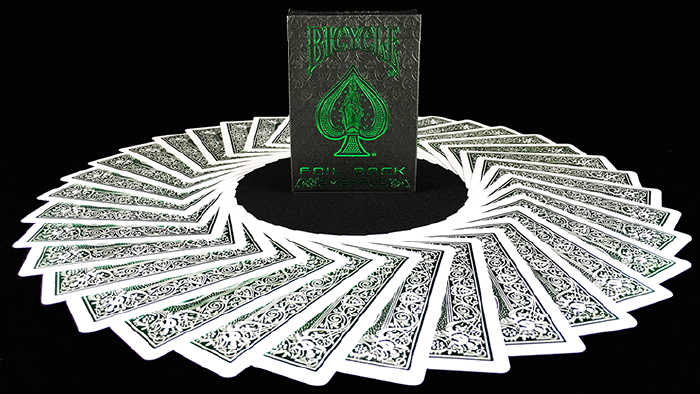 Exclusively, the Bicycle Emerald Luxe is back on the market! Collectors have been waiting for the return of these cards for a long time now, and they are finally back – now in an embossed black box with black foil. Jokarte is proud to have the exclusivity on these legendary cards. DESIGNED and manufactured by the US Playing Card Company. The Emerald Luxe was originally reserved for members of Club 808, but fell out of stock after 2 weeks. The Jack, Queen and King’s black colors have been redesigned. These cards are perfect for collectors, magicians, and amateurs eager to buy a nice gift.