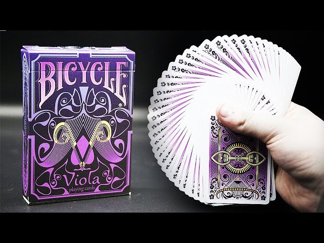Coated in shades of purple and yellow, the Bicycle® Viola decks remind us of the curves and elegance of the viola flower.  Designed by Johnny Whaam, the deck contains 52 cards, a double-backer, two custom Jokers, and one Ad card.