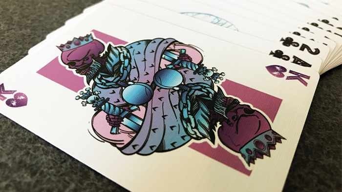 This 56-card, poker-sized deck has a beautiful, smooth 300gsm finish on black core paper that truly makes the artwork pop and comes in a stunning tuck case that will look great on display in any playing card collection.