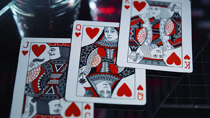 Black Widow Playing Cards is perfect for magicians and cardists who want to capture the attention of their prey. Ensnaring their audiences with its metallic red foil web, and the tell-tale hourglass adorning the card backs.