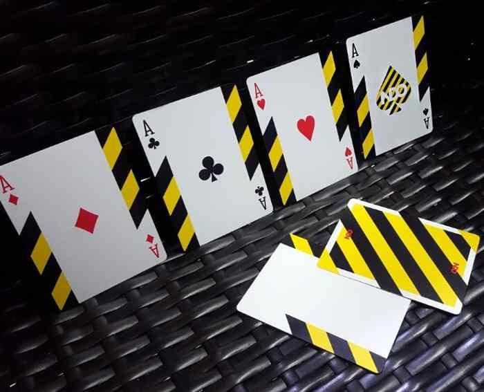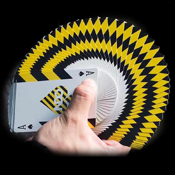 Featuring design elements that overlap the borders of the cards, these sexy cards are dramatic and bold. The diagonal stripes make the card look outstanding in cuts and spins. Your moves will look loud and hypnotizing.