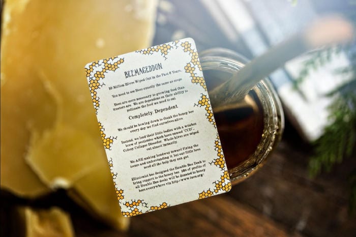 From the gorgeously intricate card backs to the cheerful “bee rider” custom joker, apiarists and rare card collectors alike won’t be able to resist the endearing custom illustrations. In recognition of the bee’s vital role in our world, 10% of all profits from the decks’ sale will be donated to honey bee preservation through the International Union of for Conservation of Nature.