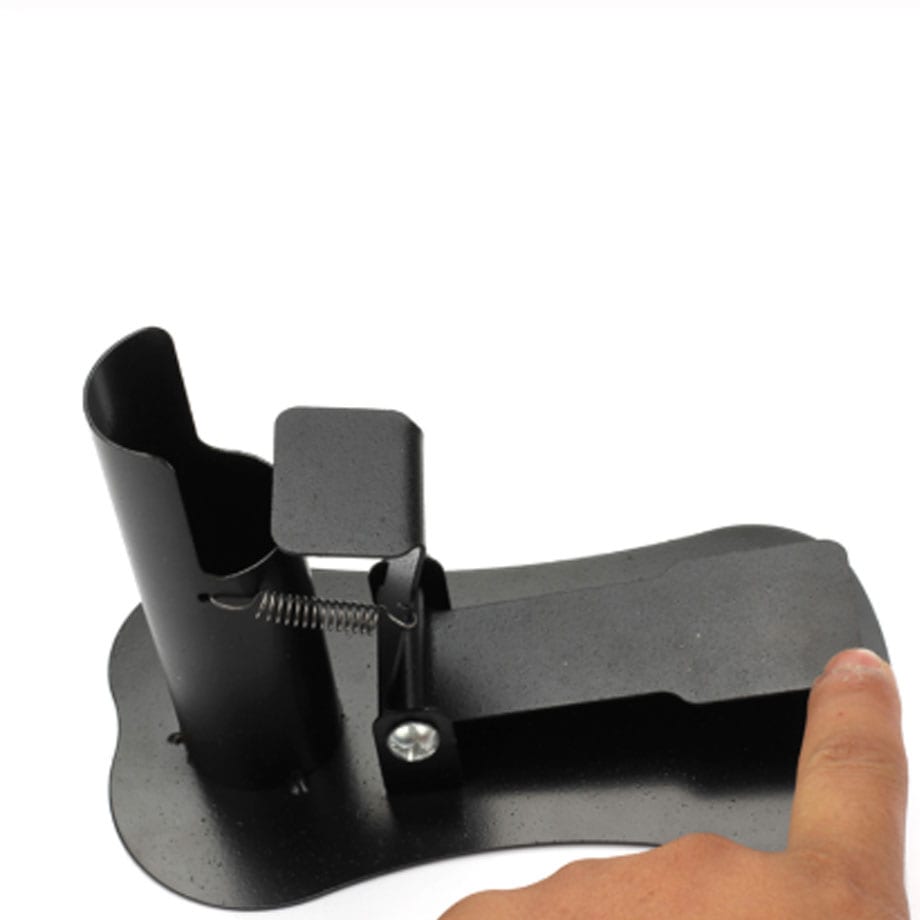 It is a small handmade device that is foot operated.