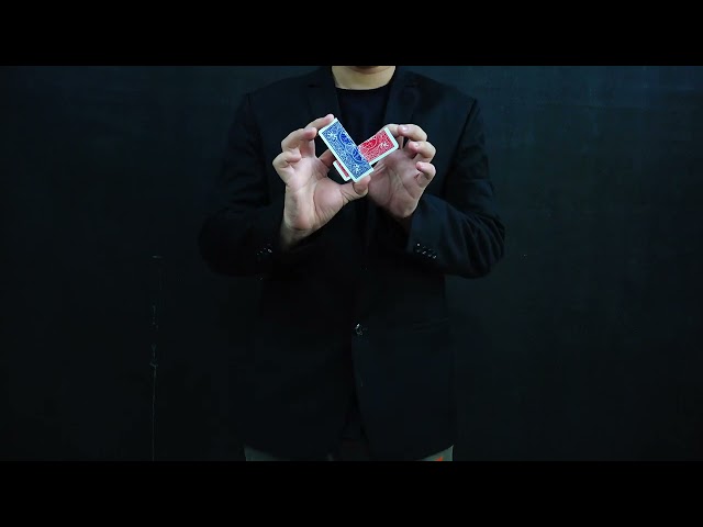 Welcome to Card Penetration Handcrafted. Imagine you have 2 cards to show the audience on both sides. You fold the cards together, and then visually make the red card pierce the blue card, right in front of your audience.
