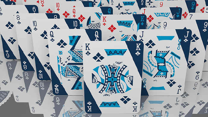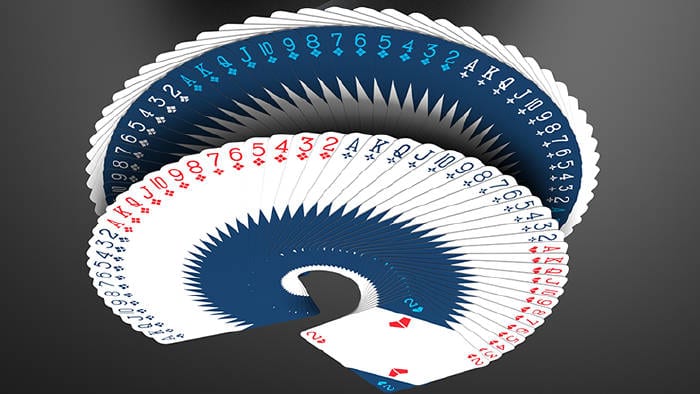 Cardistry Switch has De’vo’s signature twin tip mirror back design AND his “switch” pip faces, meaning that you can Switch the face cards from black/red pips to blue/white pips AND shuffle them normally without mixing up the cards! This time we changed BOTH pip colors so that the two fans are completely different from each other, almost looking like two different decks!