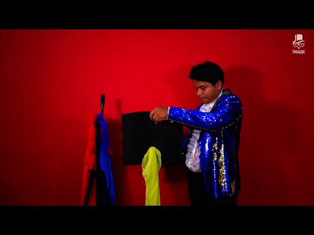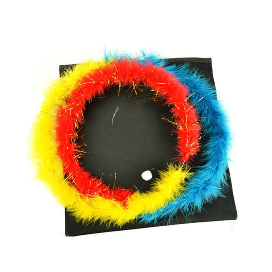Repeat three times, respectively, red, yellow, blue three scarves,