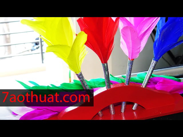 The magician displays 4 feather plumes, all different colors. He rolls up a sheet of thin cardboard into a tube and then, one by one pushes the plumes through the tube. Each plume changes colors when it comes out the other side! At the end of the routine the magician opens up the tube to show it`s completely empty.