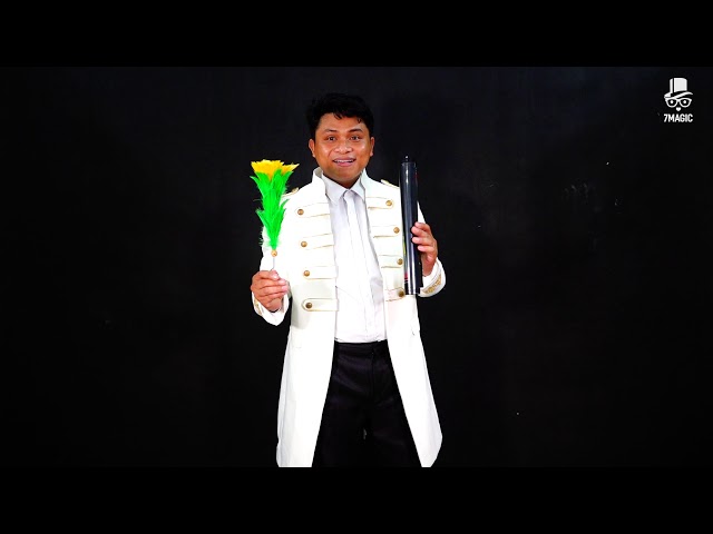 The Magician shows a clear plastic sheet and in the blink of an eye, a bouquet of flowers appears in the window. The Magician rolls the window into a tube and produces a feather bouquet that seems to take a bow at the end!