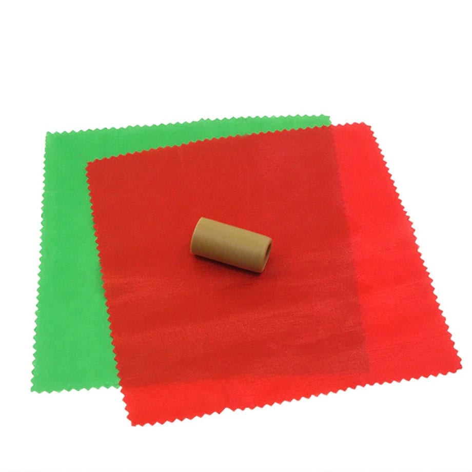 •  When the entire red silk passes through performer’s fist, it will become a green silk.