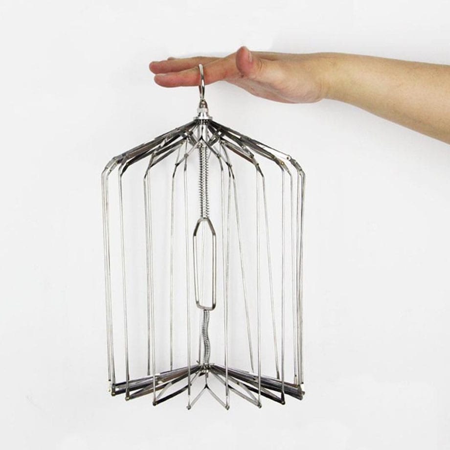 • One of the most in-demand props in all of magic! The Appearing Bird Cage is a truly startling effect. With your bare hand, reach into the air and produce a full size bird cage, complete with live birds! Produce the cage from under a foulard or a bunch of silks. No matter how you produce it, the sudden appearance of the cage and live birds will bring the house down!
