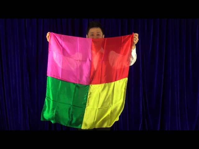 The performer displays four colored silk hanks which he bundles together. A slight shaking motion and the assorted silk hanks change into one large 36″ multicolored scarf.