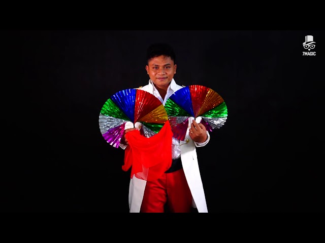 Easier than you can imagine, you can instantly pull a Beautiful multicolored fan from your sleeve! Or produce it inside a rolled up newspaper, from inside an “empty” box (like a Square Circle), from underneath a cloth- you decide!