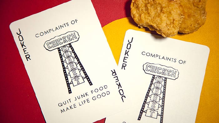 This jumbo deck is specially printed as an enlarged version of the Chicken Nugget Playing Cards. And it originated from Horret Wu’s words, “Hey Hanson, if you make a Jumbo Chicken Nugget Deck, then I can use it in my routine, right?” Thus, this jumbo deck was born. Horret also shows off some of his great moves with the Jumbo Chicken Nugget Deck in the trailer.