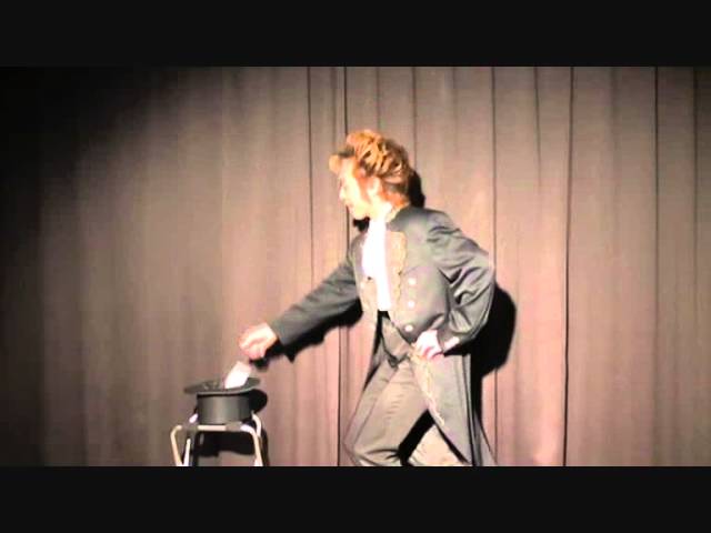 The performer grabs the falling stool and places it on the stage floor.Included: