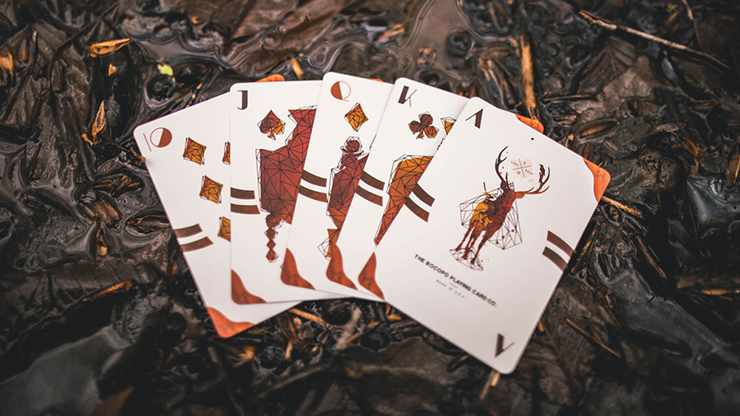 Lost Deer Jungle Edition Playing Cards selected the burning sun-like orange-yellow, with bright and full colors and pure white background. It adds tropical jungle-like enthusiasm in the fantasy-like mystical atmosphere. As long as you close your eyes and take a deep breath, your thoughts will instantly be brought into a tropical jungle bathed in the sun, where you are walking and around with vines.
