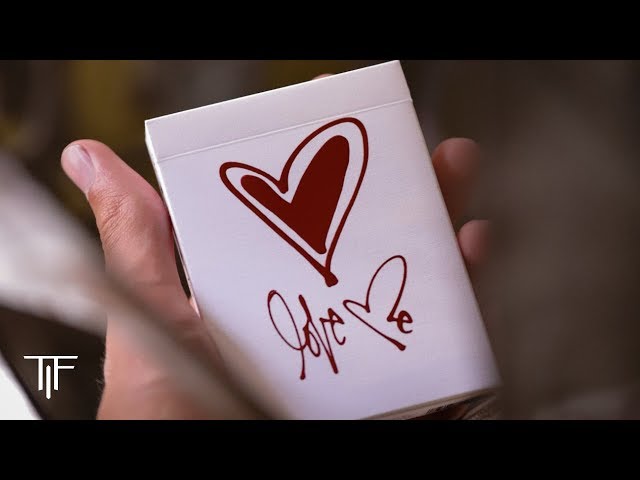 The cards feature an original Ace of Spades, Joker, Back Design, Box Design, Sticker Seal, and Ace of Hearts – renamed the Ace of Love. The box is striking, with vibrant red foil accents on premium, fine-linen paper.