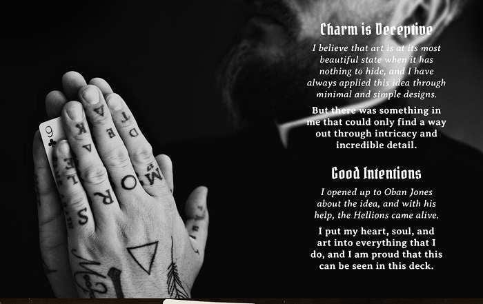 Designed by Daniel Madison for Ellusionist, the Hellions card set is specifically designed with card players, magicians and card enthusiasts in mind.