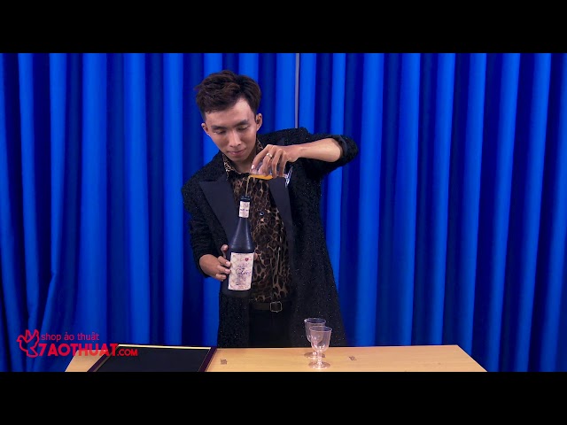 Magician pours the brown liquid in the cup into the bottle,then he pours out that liquid  into another cup.The color of the liquid turns into yellow!Amazing!Magician pours that  liquid into the bottle again and pours out it into the third cup.The color of the liquid  that comes out from the bottle changes to light brown!Fantastic!