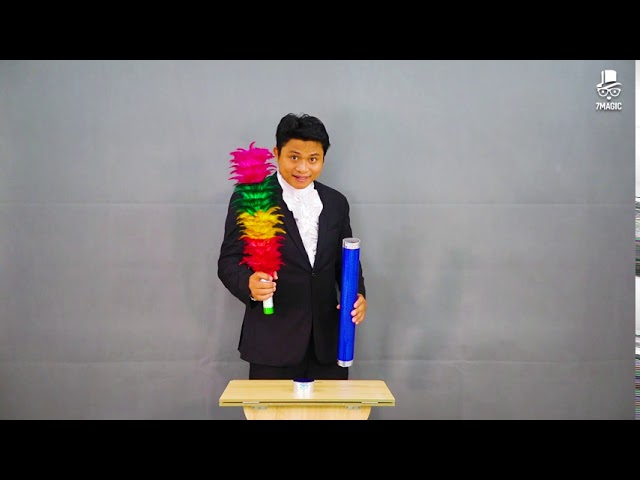 Magic Broom Transform An impressive theatrical magic show for theater magicians. The magician showed the audience a chicken feather broom with many colors, and then with just a snap of the hand, the feather broom instantly turned into a beautiful flower branch with many blooming flowers. frantic.