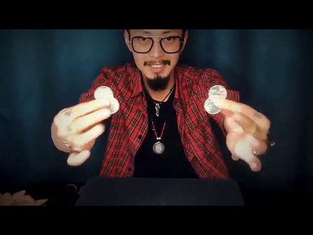 – Magician shows three coins in his left hand. These coins jump into his right hand one by one, and finally they all vanish.