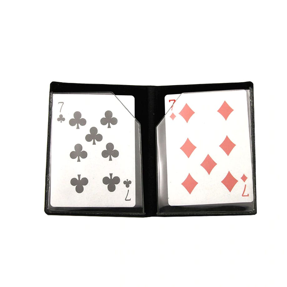 Two cards are show in a small black wallet – say the King of Hearts and the Nine of Clubs. Both are removed and placed on a spectators hand.