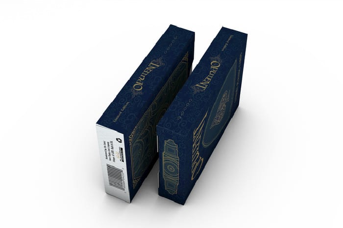 The back of the cards have been based off of a church in Belgium called Dome of St Aubins. The design is of the ceiling of it as if you were standing in the middle and looking up.