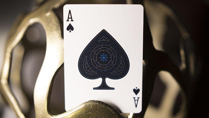 The midnight black backs of Paradox Playing Cards contrast with the mystical, blue-dotted swirling circles, suggesting chaos — yet every line is meticulously placed in defined order.