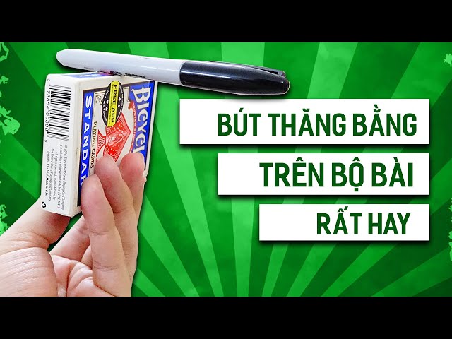 Then he removes one of the decks from underneath the Sharpie. It stays horizontally in the air! He slides his hands under and above the Sharpie, nothing is keeping it in the air!
