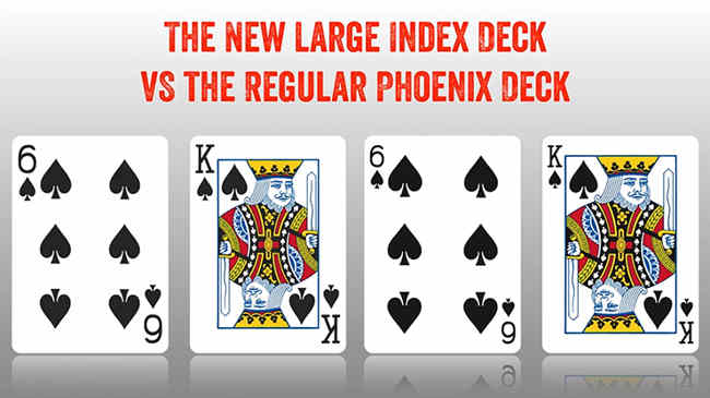 In 2009 a Revolution was started, as the Phoenix Decks were launched, specially made for Magicians!The Phoenix Deck Large Index has now arrived, and not a minute too soon! With a 50% larger index, your card magic is immediately more apparent to your audience. Read on for the “how and why.”