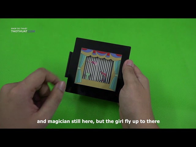 A picture is displayed of a magician, with a lady lying on a table in front. The performer makes a magic gesture and the lady visibly floats up right to the top of the picture and then back to the table again!