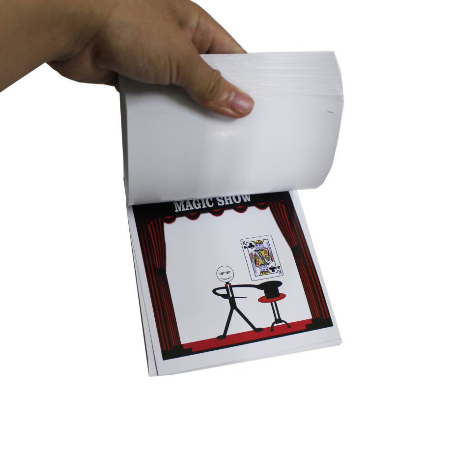 And then the magician attaches to the first page the image of a magician, especially when the magician flips through the pages of the book, all the pages now have the magician on the page. With the animation created when flipping through the pages, the audience saw the magician in the notebook take out the card the audience chose from within the hat.