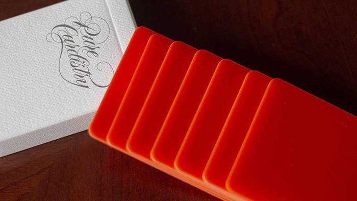 Pure Cardistry Training Playing Cards is specially designed for the cardistry player. It’s composed of 7 pieces of sleek organic plastic blocks. The thickness is the same as the normal Bicycle Playing Card.