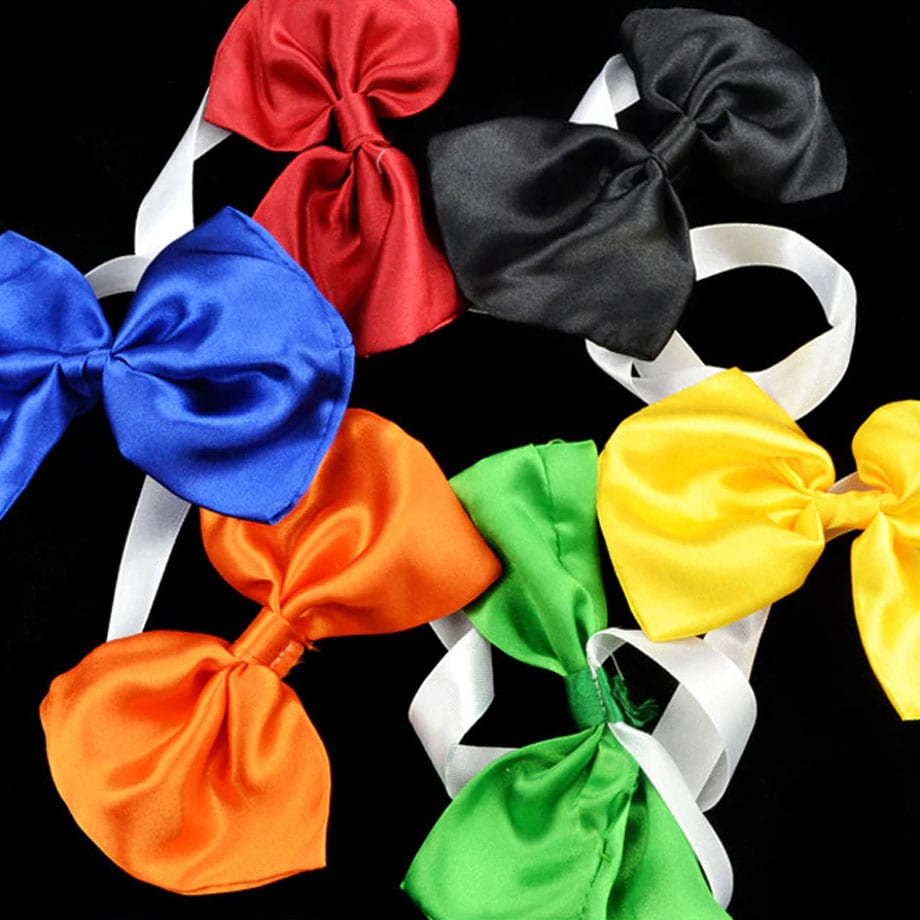 Using the Quick Change Bow Ties, you are always in perfect position to insantly chane the color of your bow tie with lightning speed, using only one short movement with your right of left hand. You will be able to change the color of your bow tie up to 6 timrd, perfect to use as a running gag, also if you work as an magician for children. Up to now everybody who saw this gimmick looked in disbelief. The Speed is incredible.