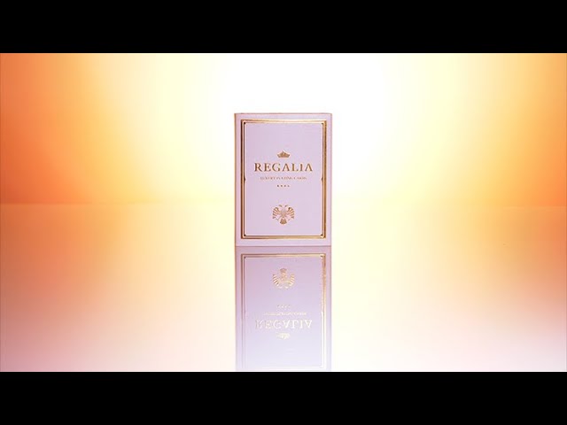 The box is made from two protective pearlized white casings, with an inner and outer cellophane wrap. These individually gold-foiled cards are sealed to withstand any extreme heat or humidity during shipment. Our priority for the Regalia series has always been quality. Each card has been carefully hot stamped with gold foil and then protected with a true B9 finish, thus to not compromise the feel and fluidity with each shuffle or flourish.