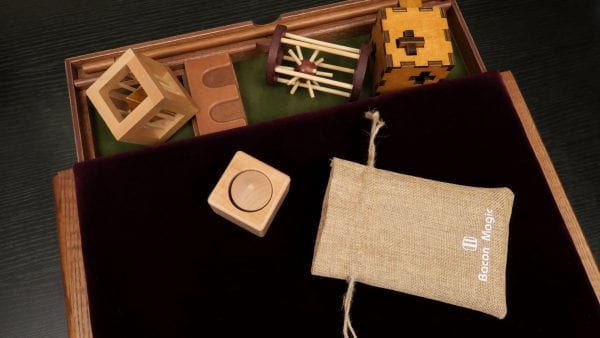 Two wooden blocks are fitted together and placed on the table, the magician will challenge the audience to take out the wooden blocks inside without touching them, there will certainly be many ideas coming up. The idea of ​​success, also the idea of ​​failure. However, all ideas are complex or difficult to implement