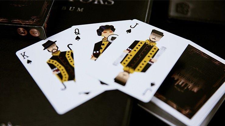 This deck’s origin comes from the culture of Shanghai. The special pronunciation marked on the 4 As and 2 Jokers is Shanghai dialect. The figure of the JQK is old-style clothing like cheongsam and with long gowns. The back of the cards is the landmark scenery of Shanghai, while the front of the box is Shanghai’s famous and traditional structure, Shikumen. The overall design style reveals the embodiment of the modern sense of this city.