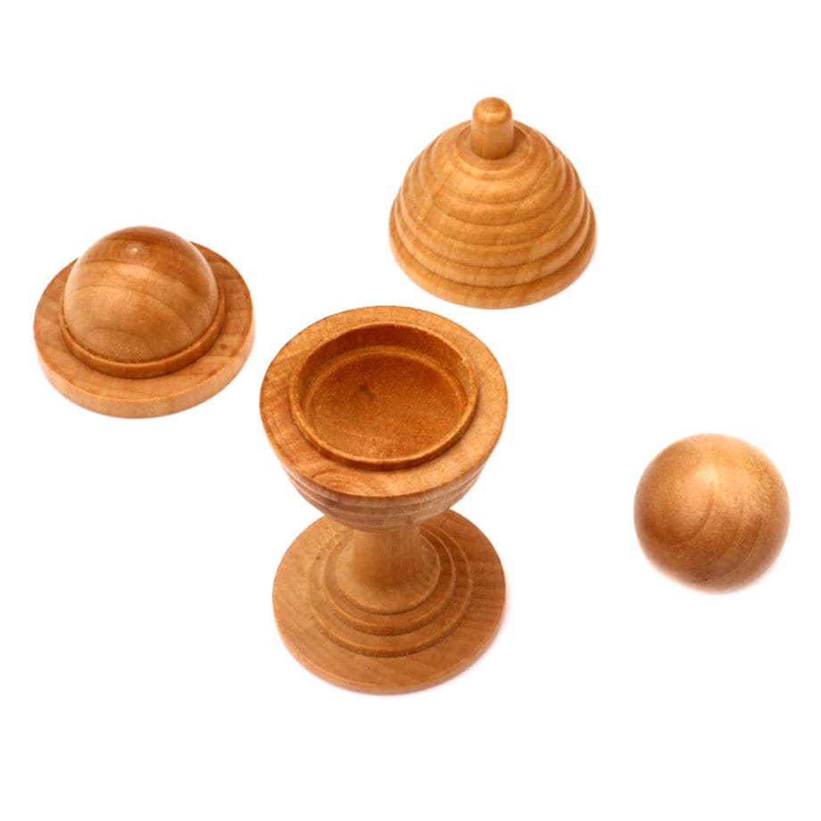 A ball taken out from a vase and pocketted. The empty vase is covered by the empty lid. Yet a moment later, the ball returns to the vase. The beautiful and precision made vase is responsible for the effect and you have almost nothing to do.